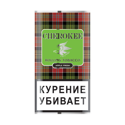 Сигаретный табак Cherokee Cherry Dream сверхтонкой нарезки Fine Cut (максимальная ширина нарезки 0,3 мм). В составе табаки сортов Virginia, Oriental и Burley. Не содержит срезов жилки, легко скручивается. В состав смеси не входят заменители табака, такие как взорванная жилка или восстановленный табак. Курительный табак Cherokee Apple Fresh имеет нежный аромат смеси зелёного и красного яблок. Каждый кисет оснащён замком zip-lock для обеспечения максимальной герметичности после вскрытия упаковки.