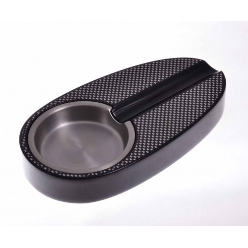 Компактная пепельница на 1 сигару тайваньской марки Tom River. Съемная чашка из металла. Отделка- «под карбон» с глянцевым лаком.