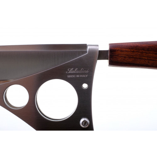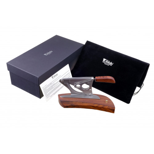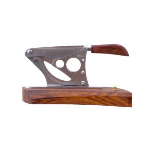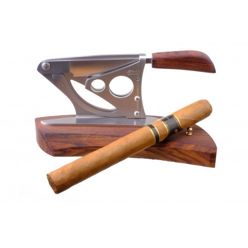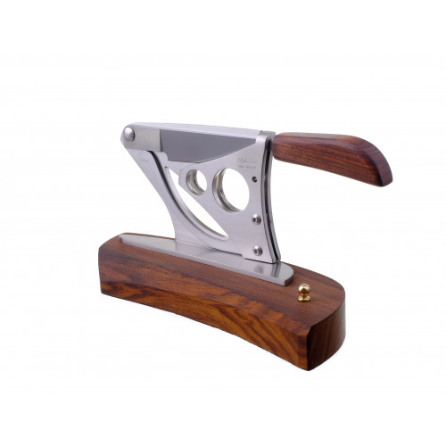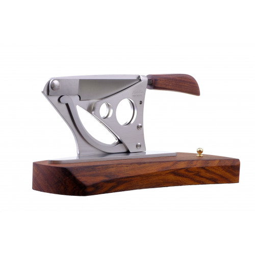 Роскошная настольная гильотина ручной работы, созданная мастерами итальянской фабрики Coltelleria Saladini из Флоренции. Благодаря своему непревзойденному исполнению послужит необычным украшением вашего интерьера, и, разумеется, своей основной задаче — точной и ровной обрезке сигар. Основание выполнено из массива палисандра, режущая часть — из нержавеющей стали высокой пробы. Подарочная упаковка. Сайт производителя www.coltelleriasaladini.it