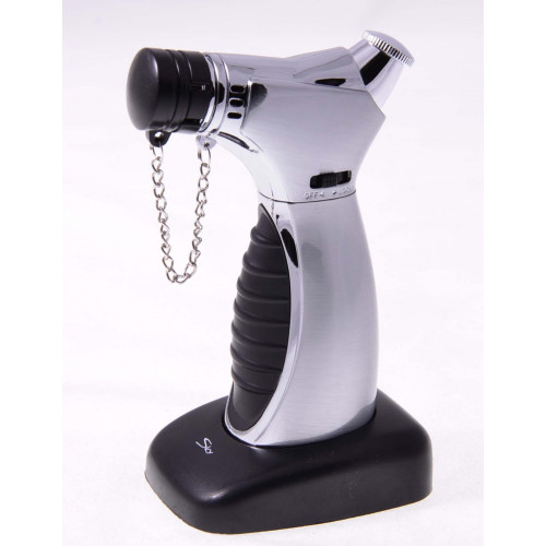 Настольная газовая зажигалка от корейского бренда Tycoon. Идеально подходит для розжига сигар и курительных трубок благодаря создаваемому мощному потоку пламени. Корпус, выполненный из нержавеющей стали, удобно лежит в руке. Подарочная упаковка и фирменная гарантия.
