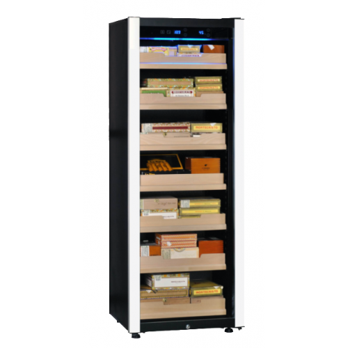 Полки - 6 шт. выдвижные + 1 шт. фиксированная (регулируемые по высоте и наклону полки для улучшенной демонстрации). Съемный лоток для презентации сигар гостям.