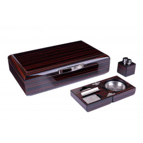 Настольный набор сигарных аксессуаров от итальянской компании Lubinski SRL, состоящий из нескольких предметов: хьюмидора для хранения сигар, пепельницы, зажигалки, пробойника и гильотины. Идеальный подарок для любого ценителя сигар.