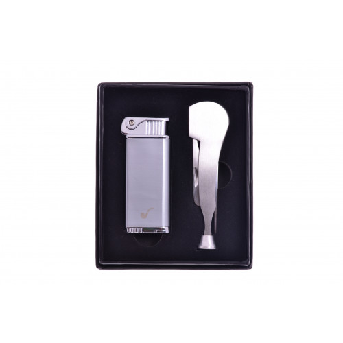 Подарочный набор для трубокуров, состоящий из газовой зажигалки и трубочной топталки. Оба предмета выполнены из нержавеющей стали. Подарочная коробка и фирменная гарантия.
